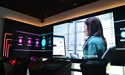 為了滿足客戶強調的“空間美感”,我們根據現場條件定制了屏幕的安裝結構,可視化顯示系統完美適應現場裝修,美感十足!為了滿足客戶強調的“互動性高”,我們在可視化方案系統中加入了智能感應系統,參觀者可以在屏幕前做動作,或者直接觸摸顯示屏,或者直接通過控制系統,智能感應系統將信息傳輸至中央控制系統,繼而做出相應的回應與參觀者互動。